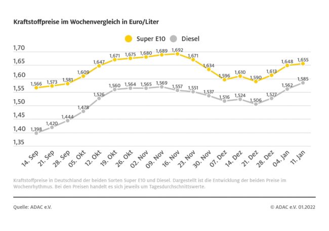 München (ots) – Der Preis für Dieselkraftstoff ist erneut kräftig gestiegen. Wie die aktuelle ADAC Auswertung der Kraftstoffpreise zeigt, kostet Diesel im bundesweiten Mittel derzeit 1,585 Euro je Liter. Das sind 2,3 Cent mehr als in der Vorwoche. Gleichzeitig blieb der Dieselpreis damit nur um 0,1 Cent unter dem Allzeithoch vom vergangenen Montag: Am 10.…