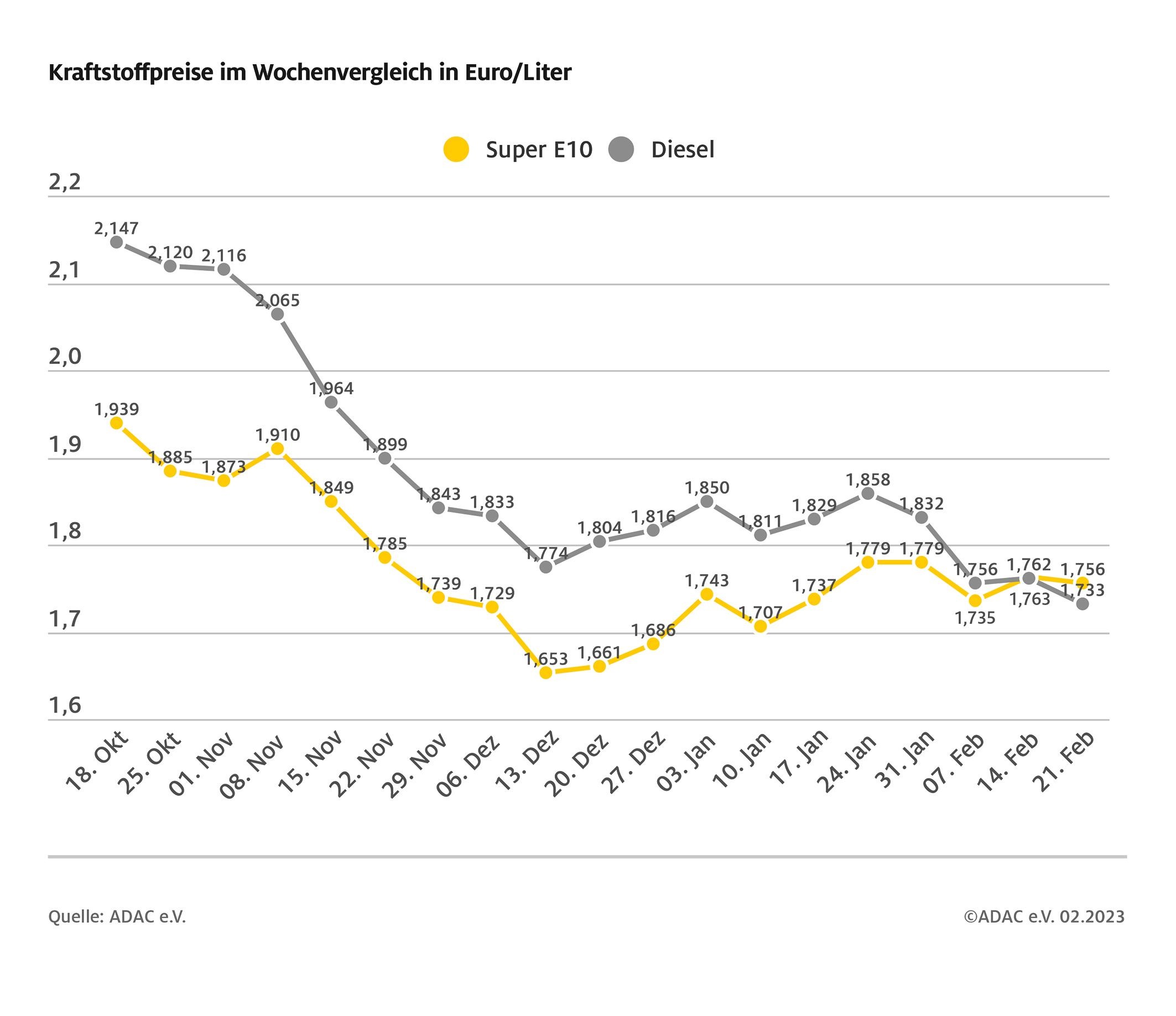 Kraftstoffpreise im Wochenvergleich Quelle: ADAC e.V.