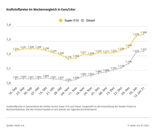 München (ots) Benzin geringfügig teurer, Diesel etwas günstiger Der Kraftstoffmarkt in Deutschland ist derzeit in weitgehend ruhigem Fahrwasser. Wie die aktuelle ADAC Auswertung der Kraftstoffpreise zeigt, ist der Preis für Super E10 um 0,1 Cent gestiegen und liegt derzeit im bundesweiten Mittel bei 1,355 Euro je Liter. Der Preis für Diesel-Kraftstoff hat indes leicht nachgegeben: Ein…