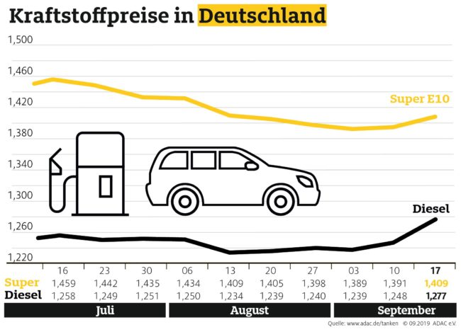 München (ots) Tanken in Deutschland ist wieder spürbar teurer. Laut aktueller Auswertung des ADAC müssen Autofahrer für einen Liter Super E10 derzeit durchschnittlich 1,409 Euro bezahlen, das sind 1,8 Cent mehr als in der Vorwoche. Diesel verteuerte sich im Bundesmittel noch deutlicher auf 1,277 Euro je Liter, ein Anstieg von 2,9 Cent. Grund für die…