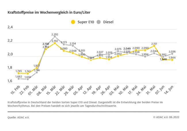 München (ots) – Das Niveau der Kraftstoffpreise in Deutschland ist nach wie vor viel zu hoch, die Autofahrer müssen für ihre Tankrechnung weiter zu viel bezahlen. Dies zeigt die aktuelle ADAC Auswertung der Kraftstoffpreise. Danach kostet ein Liter Super E10 im bundesweiten Mittel 1,944 Euro, das sind 0,4 Cent weniger als in der Vorwoche. Der Preis…