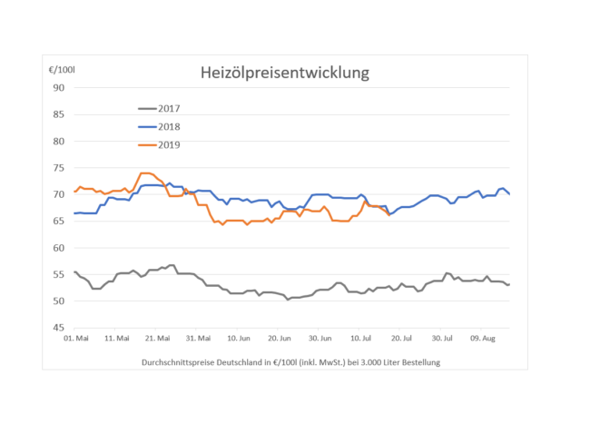 Nach einem Anstieg in der letzten Woche sind die Preise nun wieder gefallen. Die 2018er Marke konnte nicht durchbrochen werden. Die Linien von 2018 und 2019 geben sich eine Art „Kopf-an-Kopf“ rennen, wobei die diesjährigen Preise seit Anfang Mai unterhalb der Vorjahres-Preise liegen. Spannend bleibt wie sich die diesjährigen Preise im Jahresverlauf „schlagen“. Die Prognosen…