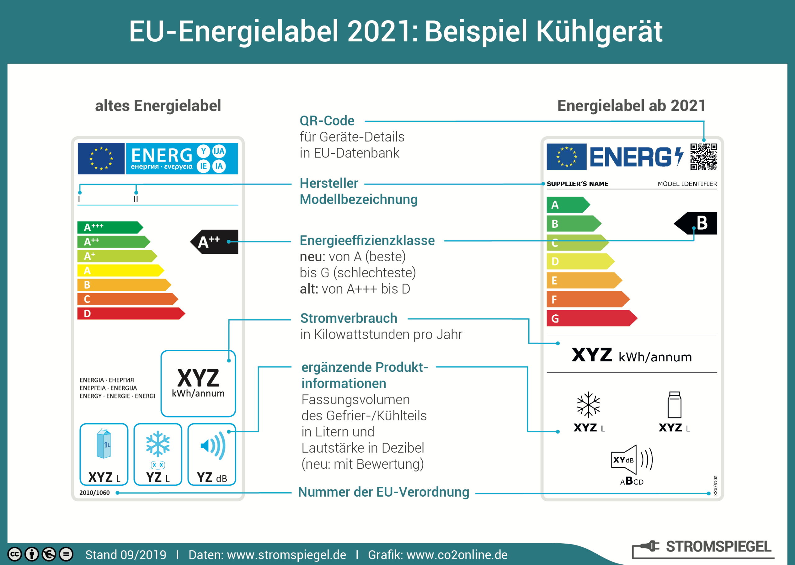 EU-Energielabel 2021: Beispiel Kühlgerät Quellenangabe: „obs/co2online gGmbH“